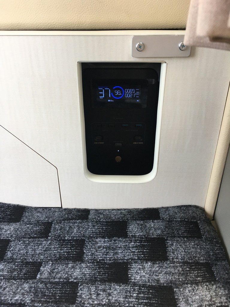 リモートワークや一人旅、趣味の時間で過ごす空間!中間のソファーベッドを取外しテーブルを取り付ければ、16インチ地デジテレビを見ながら寝たままでコーヒーが飲めるズボラ空間の完成!大容量のEcoFlow 1500W DELTA 2を採用100Vの家電でまるで自宅にいる環境を実感できます。12V走行充電、100V外部充電標準装備、オプションのEcoFlowソーラーパネルを置けばどこでも滞在できます。